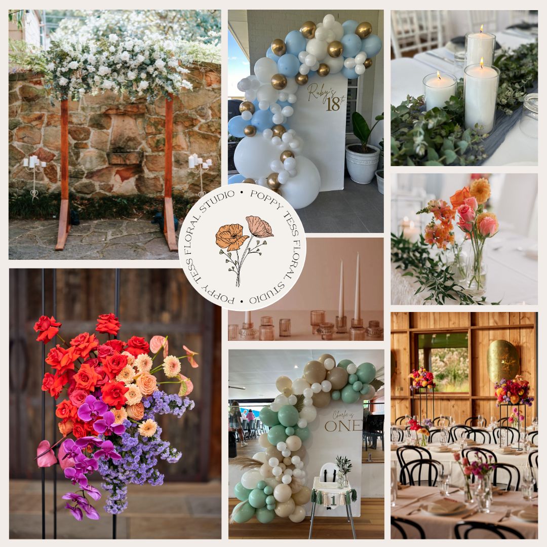 Poppy Tess Floral Studio has a range of props and styling items available for hire for your next event. From weddings to birthdays and all celebrations in between, we can help to bring your vision to life. See below for our current hire range. If you are after an item that is not pictured, please get in contact as we may be able to help!
